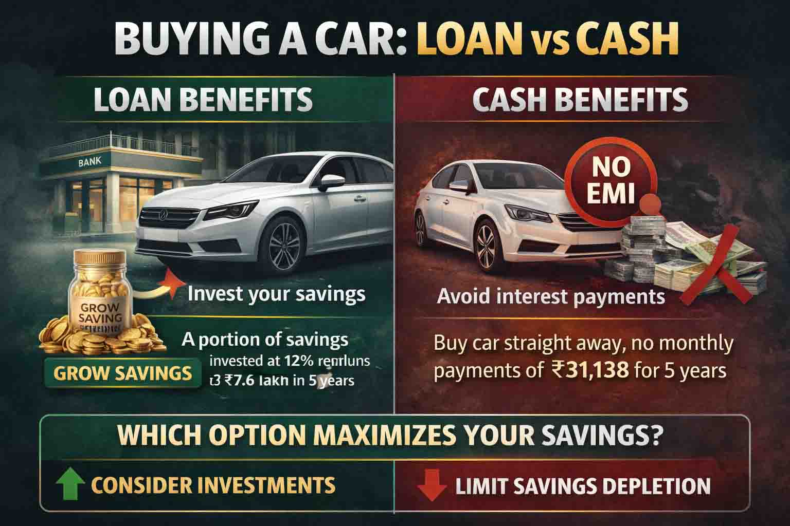 यदि आप मानसिक शांति को प्राथमिकता देते हैं और किसी भी तरह की मासिक किस्त से बचना चाहते हैं, तो कैश में कार खरीदना आपको सुकून दे सकता है। लेकिन यदि आप वित्तीय अनुशासन रख सकते हैं और निवेश के जोखिम को समझते हैं, तो लोन लेकर अपनी बचत को बढ़ाने की रणनीति अधिक लाभदायक हो सकती है।