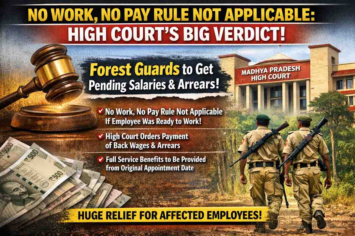 No Work No Pay: मध्यप्रदेश हाईकोर्ट ने एक अहम फैसले में साफ कर दिया है कि यदि कोई कर्मचारी काम करने के लिए तैयार और इच्छुक है, लेकिन विभाग की गलती से उसे कार्य करने से रोका गया, तो उस पर नो वर्क नो पे का सिद्धांत लागू नहीं किया जा सकता। अदालत ने रीवा वन विभाग से जुड़े फॉरेस्ट गार्डों के मामले में यह महत्वपूर्ण टिप्पणी करते हुए उन्हें बकाया वेतन, एरियर्स और अन्य सेवा लाभ देने के निर्देश दिए हैं।