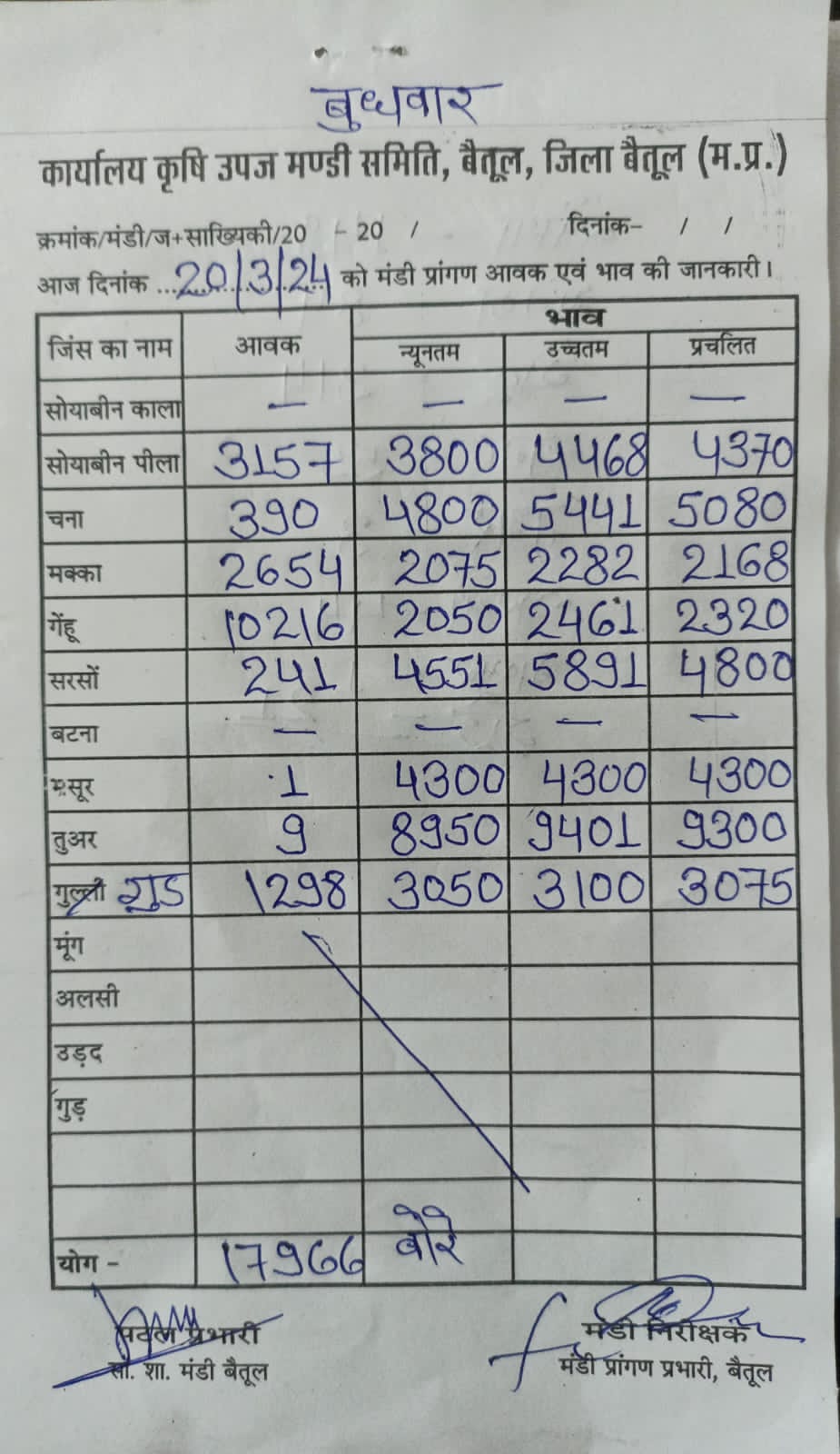 Today Betul Mandi Bhav : आज के कृषि उपज मंडी बैतूल के भाव (दिनांक 20 मार्च, 2024)