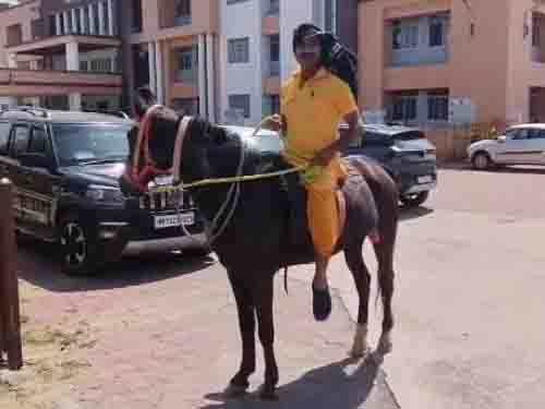 घोड़ी पर बैठकर पहुंचा फरियादी