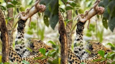 Monkey Viral Pic: तेंदुए से जान बचाने पेड़ पर चढ़ा नन्हा बंदर, फिर आगे जो हुआ देखकर लोगों का माथा घूम गया