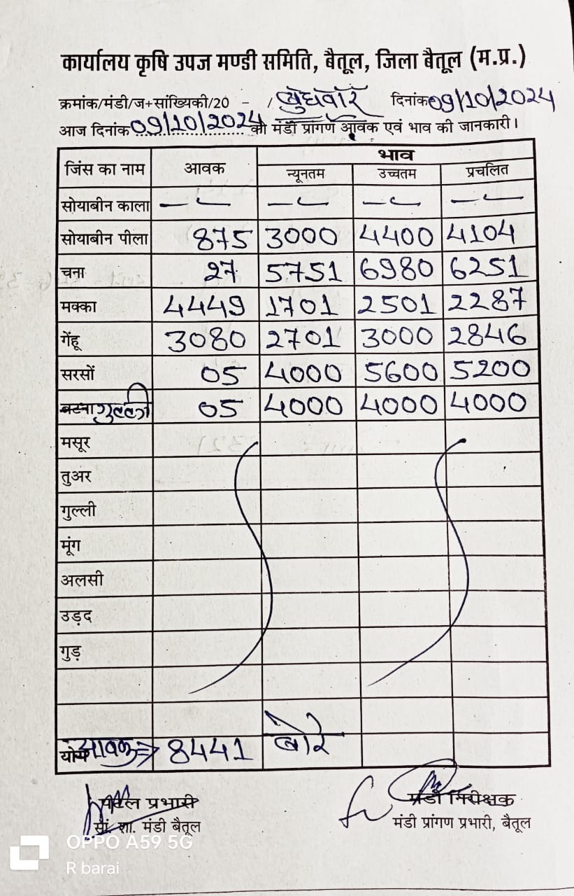 Today Betul Mandi Bhav : बैतूल मंडी में आज 9 अक्टूबर 2024 के भाव